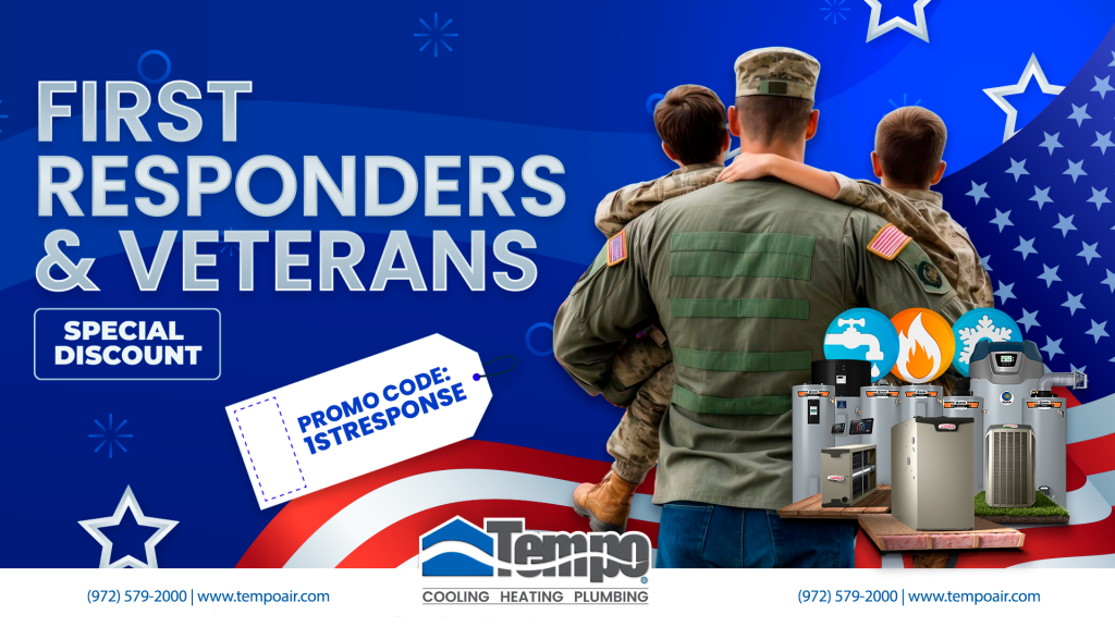 At Tempo Air, we proudly honor those who serve our country. That’s why we’re excited to offer an exclusive discount on heating, cooling, and plumbing services for active and retired veterans and first responders.