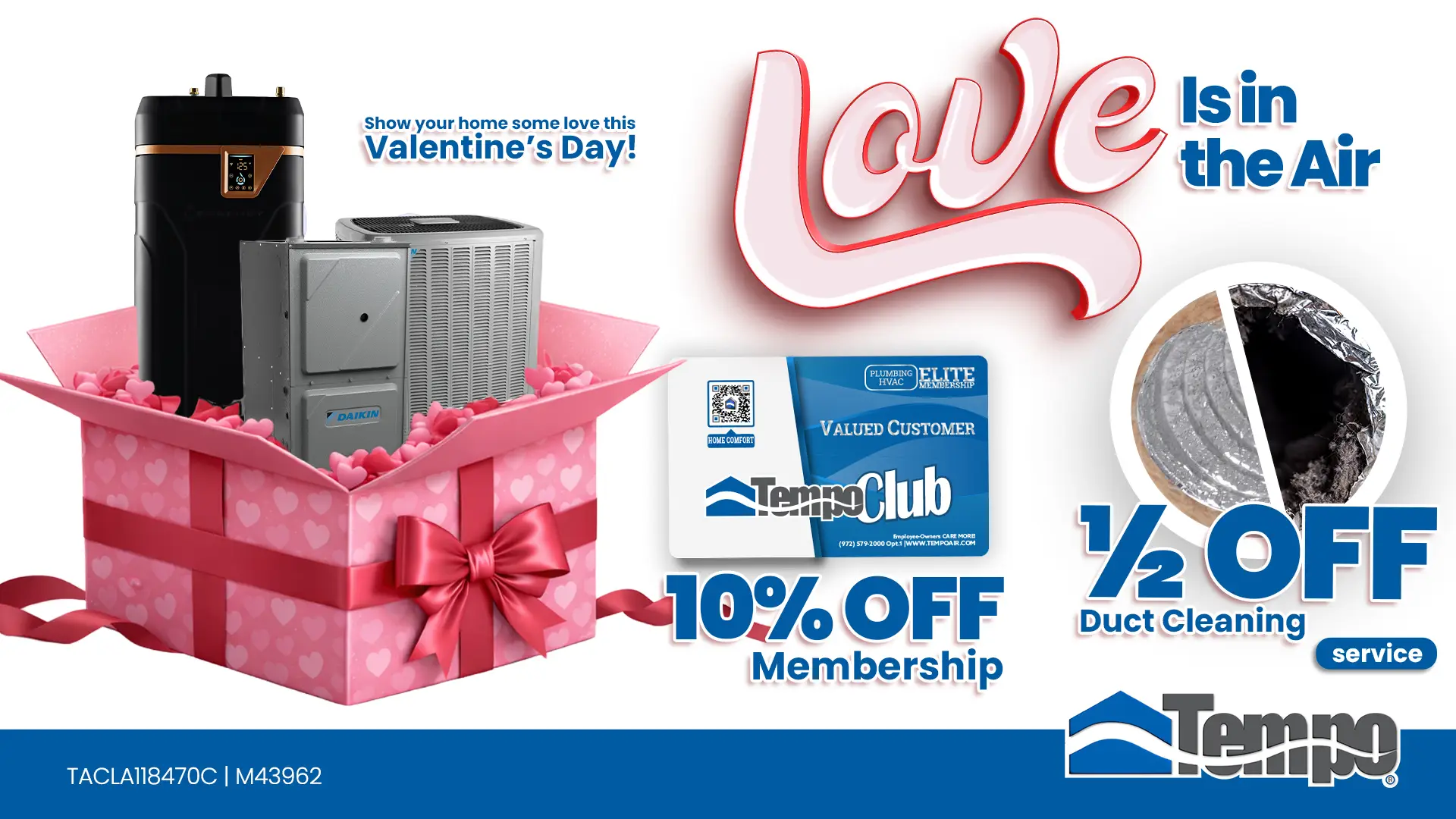 Unlock premium protection for your home today. When you join the Tempo Club, you receive: 15% OFF your first year of membership + 50% OFF professional Duct Cleaning (Breathe easier instantly!) + FREE Upgrade to an AprilAire 810 Filter*